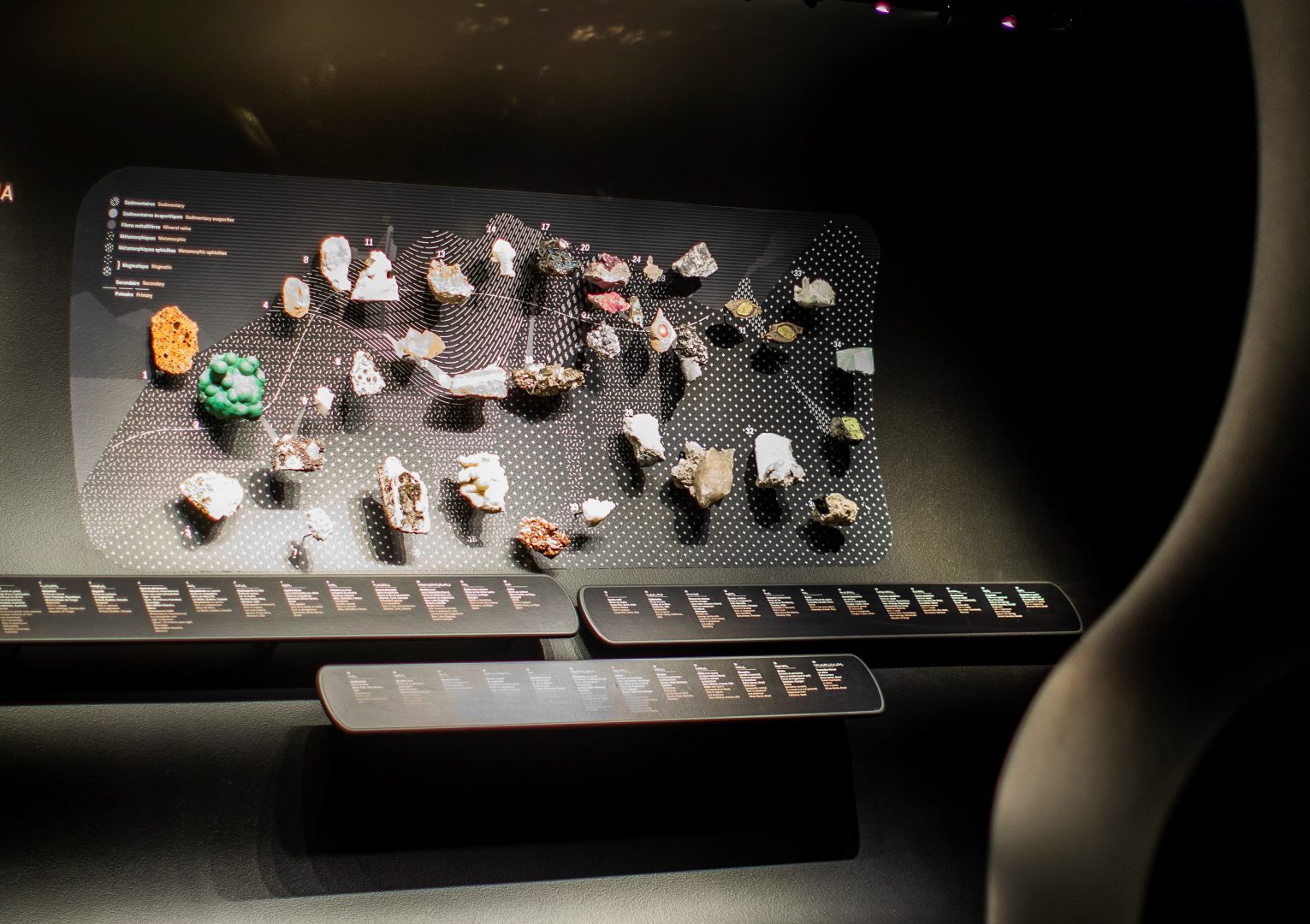 La muséographie du Minerallium de la fondation Rouiller présente les roches minérales tels des bijoux.