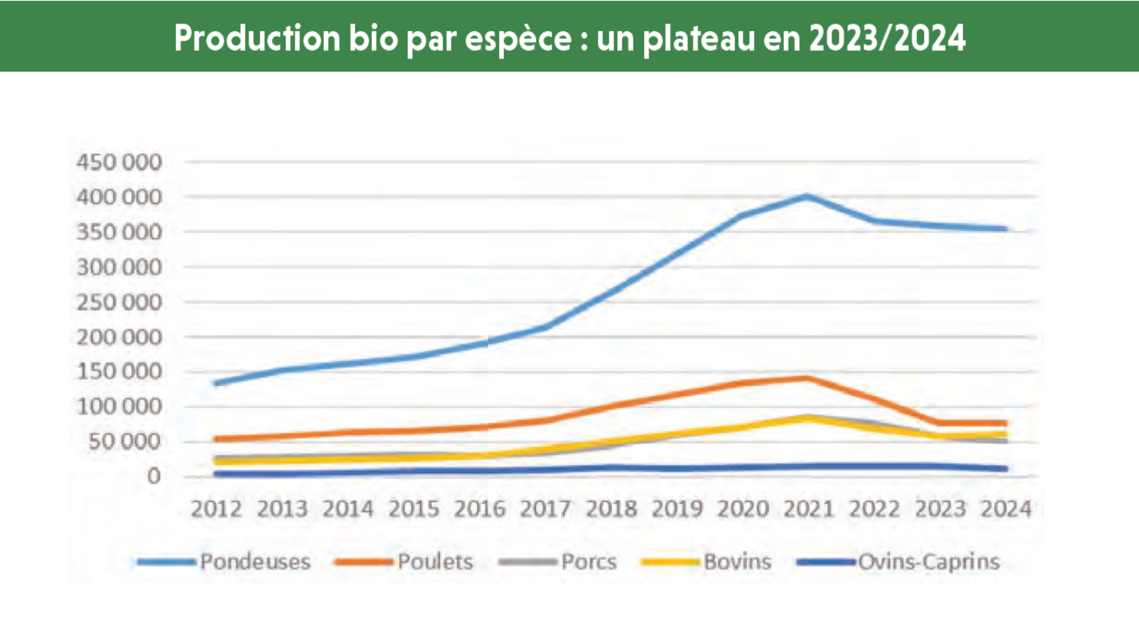 Après un pic à 740 000 tonnes en 2021, la production d’aliments composés pour animaux bio s’est réduite pour atteindre 568 900 tonnes en 2024, en baisse de 1,2 % par rapport à 2023. La tendance est à la stabilisation, malgré le recul des cheptels bio, en volailles, chèvres et vaches laitières.Sur la campagne …