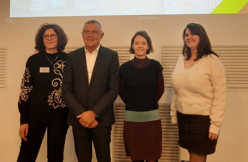 L’équipe Valoralim, avec, de gauche à droite : Céline Ravel (responsable qualité des aliments et filières aval LCA NA), Pascal Pringault (président de Valoralim), Blandine Markwitz (directrice scientifique et technique Snia) et Claire Laurent (responsable technique et communication Afca-Cial).